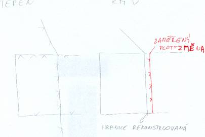 Mohu-li situaci zrekapitulovat a doplnit o své "postřehy": k rekonstrukci inkriminované hranice jste použil původní výsledek zeměměřické činnosti (alespoň tak si to představuji) a Vaše takto určené souřadnice se liší od mapy KMD (a zároveň od průběhu plotu v terénu). Otázka je, proč při tvorbě KMD tento původní GP použit nebyl - omylem nebo proto, že to nebylo možné - např. nebyly změřeny některé ID body původní měřické sítě. Ale v případě, že SOBR lomových bodů této hranice "jsou do odchylky" (to jsem se z Vašeho dopisu nedozvěděla), můžeme si říci, že hranice v KMD je v rámci možností správně - jde mi o její souřadnice obrazu - ty tvoří závazné GPÚ, nikoliv souřadnice polohy (SOBR). Pak je možné SPOL z KMD nahradit SPOL rekonstruovanými a následně vytyčenými. Novou hranici v GP by pak netvořila hranice rekonstruovaná, ale naopak zaměřený plot. Jenže, píše se o tom pěkně, ale o dost hůře dělá... Změnu je do mapy třeba zakreslit a v tomto případě zbývá pouze přizpůsobení změny mapě.