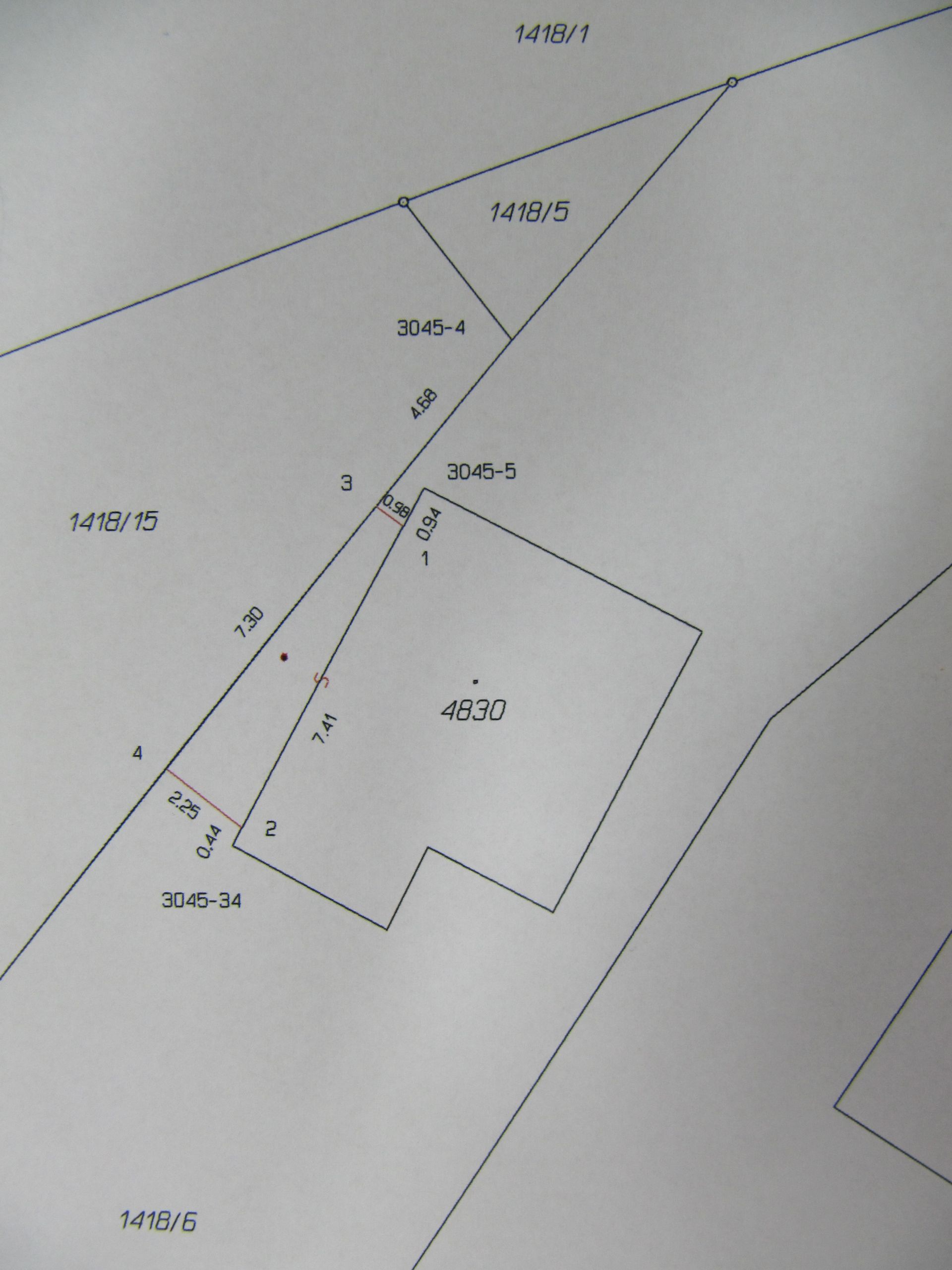 že zděný plot zasahuje do sousedního pozemku (je tam "zub") cca 30 cm. Na