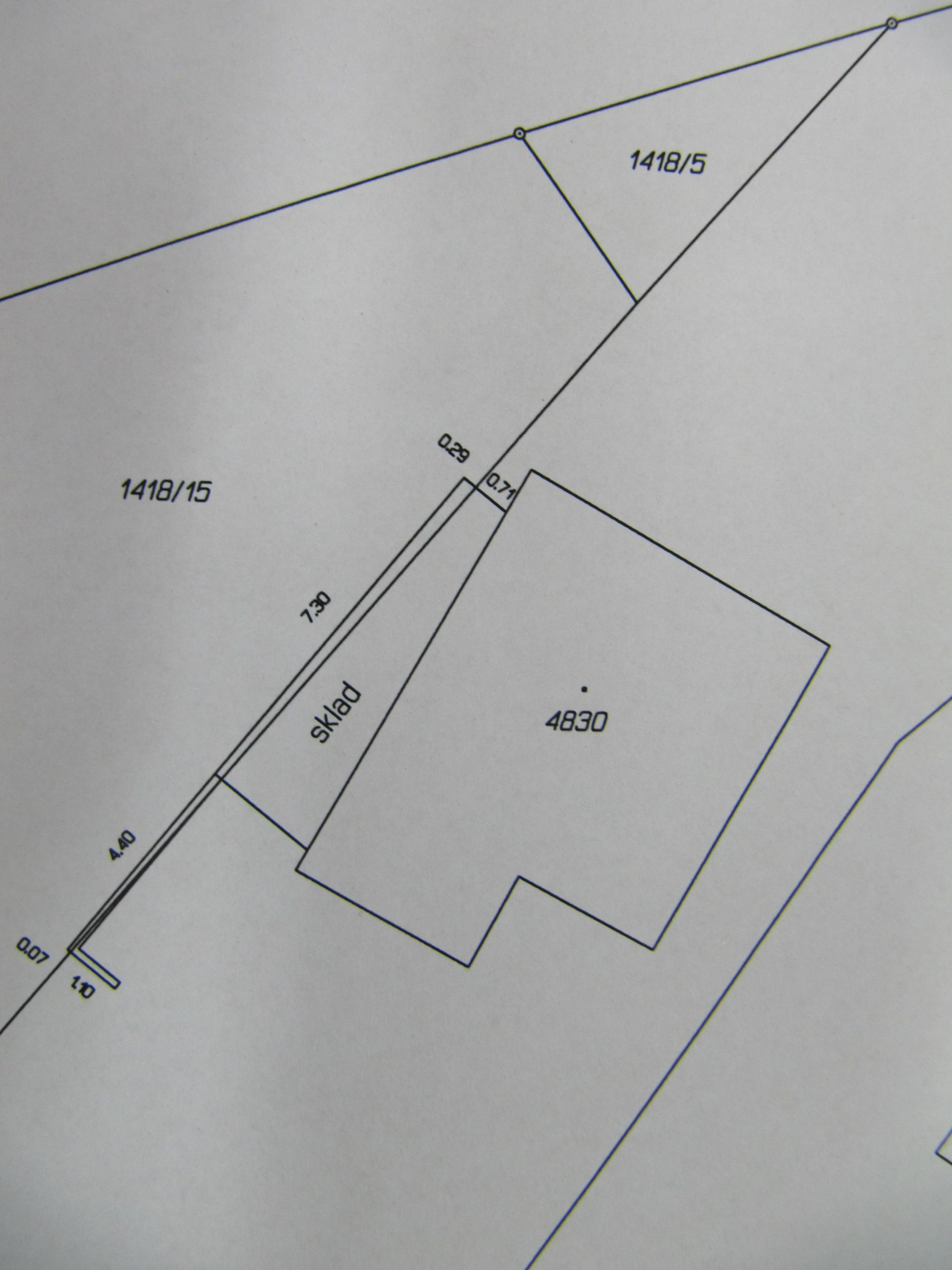 navíc to zjevně postavil na jeho pozemku. Hranice pozemků (v k.ú. je DKM) je