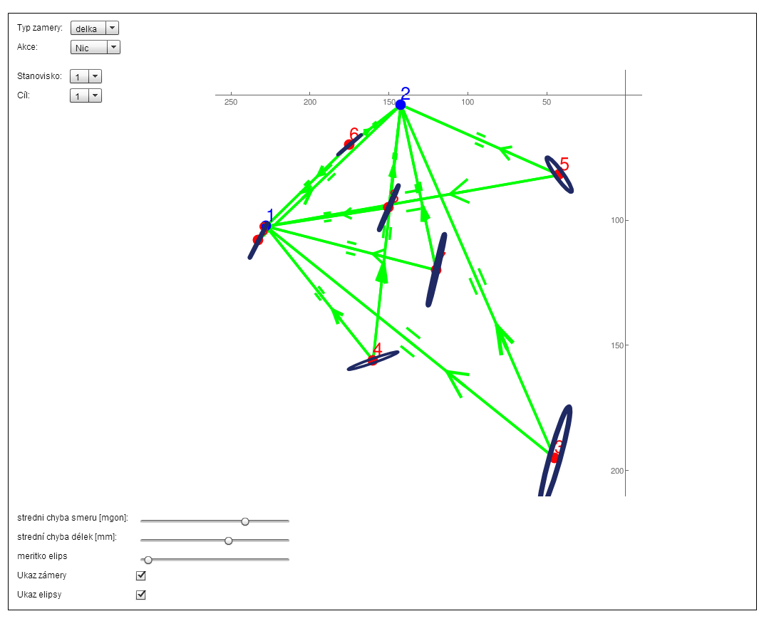 >Názorně ukazuje při simulaci elips chyb "volného polárního stanoviska"