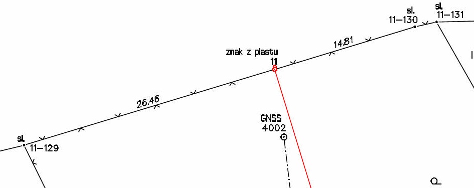 > (viz přiložený obrázek). Body 11-129 a 130 jsou zaměřené sloupky plotu