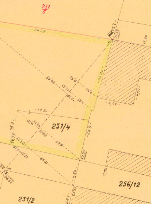 Otázka další je, že bylo měřeno k plotu a není řečeno, že tento plot byl hranicí. Vámi zaslaná dokumentace není původní zeměměřická dokumentace k hranici mezi st.53 a 231/4, ale vzniká jiná parcela.