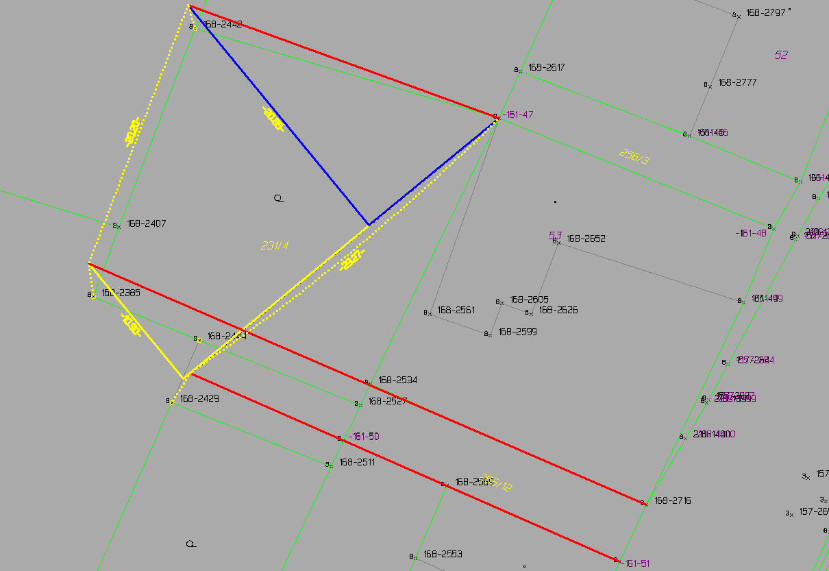 Zaměření GP z roku 1939 je chybné. Zmíněná přirozená jižní hranice, tedy stěna domu st.81 je měřena z měřické přímky staničením 52,00 metrů a kolmicí 143,05 metrů a prochází skrz stavbu st.81, nikoli po zdi stavby st.81. Měřit s tak krátkým staničením tak dlouhou kolmici je geodetický nesmysl který nemůže dát správný výsledek. Při vynesení takového měření do mapy proto obdržíme nesmysl, kdy přístup na pole nenavazuje jižní hranicí na zeď stavby st.81, ale dojde k odskoku tak, jako by původní přístup vedl skrz stavbu st.81. Tuto zmíněnou měřickou přímku není dnes možná v terénu nalézt a ověřit.