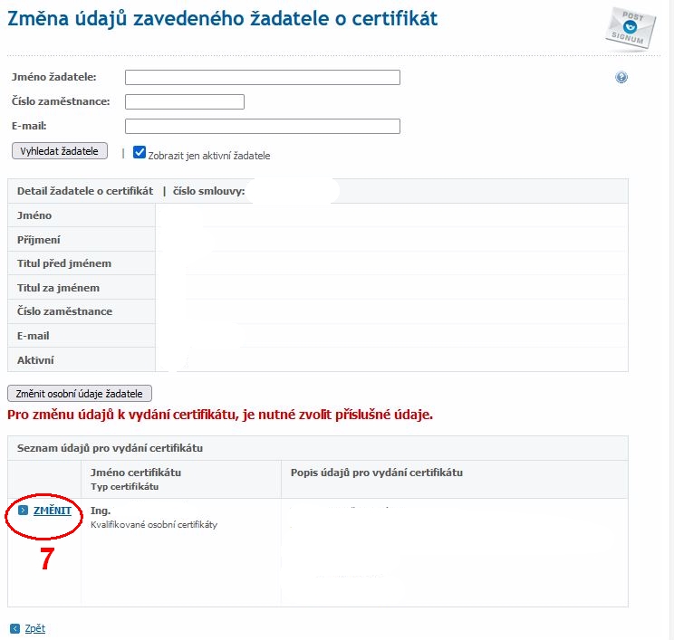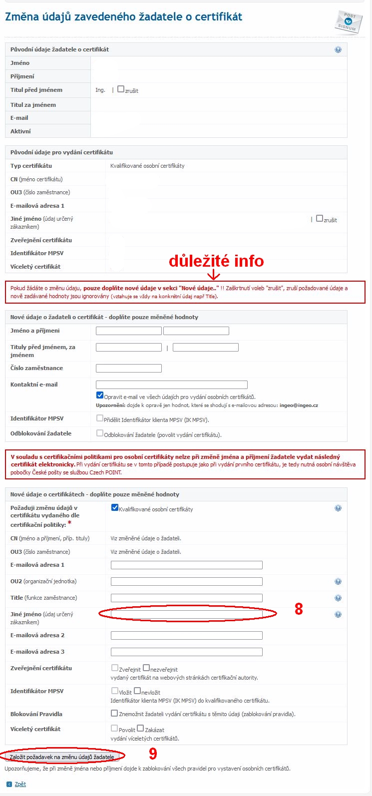 > 2. Že stránek postsignum si stáhnout změnily formulář pro certifikaci
