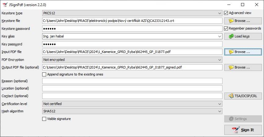 Ale nejsem si jistý zda je vše v pořádku v programu JSign v2.2. Je zde nutné