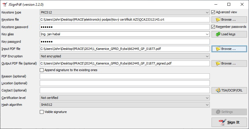 K čemu je dobrá kolonka Key password se píše v uživatelské příručce obv. v c:\Program Files\JSignPdf\docs\<file:///c:/Program%20Files/JSignPdf/docs/> , ale neznám nikoho, kdo to používá vyplněné